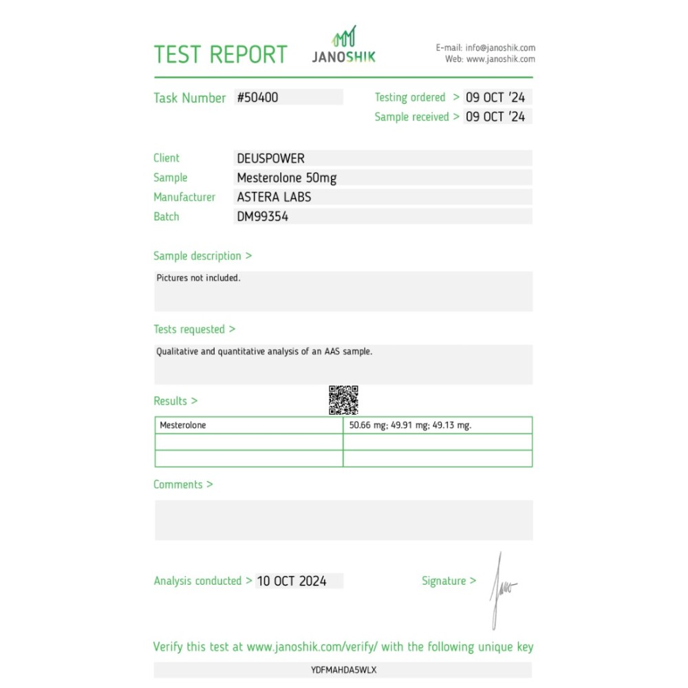 Aumenta a dureza muscular, aumenta a libido, efeitos anti-estrogénicos |