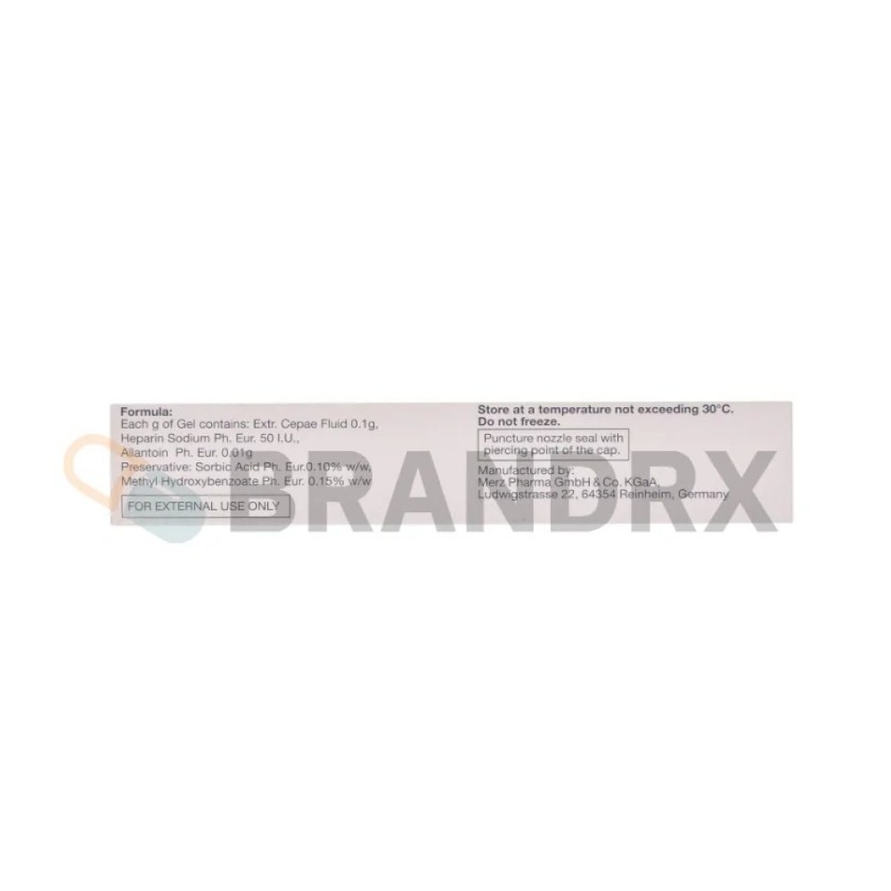 | Active substance | Alantoína, Fluido Extra Cepae, Heparina Sódica |